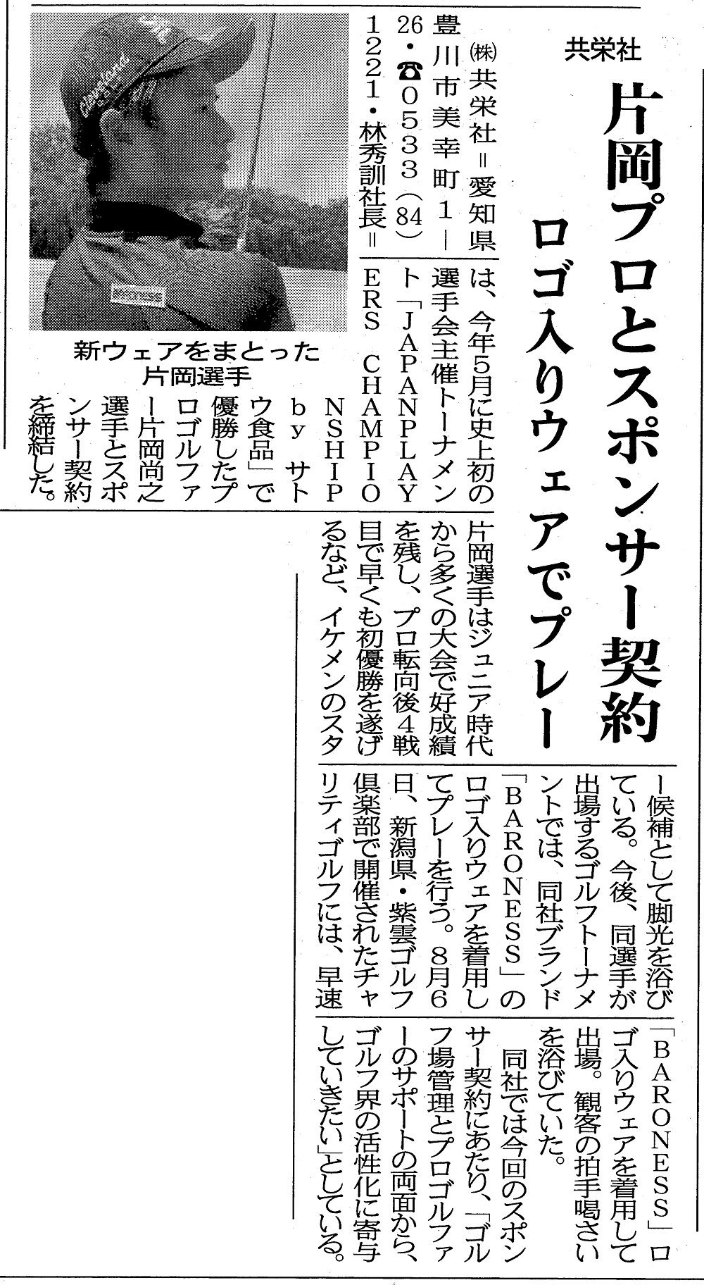 『農機新聞』2021年8月17日号にて片岡尚之選手と共栄社が紹介されました