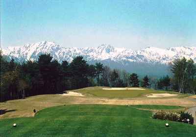 6番ホールティーグランドより北アルプスを望む