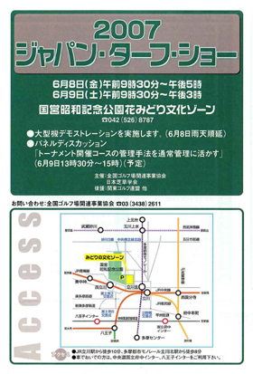 ━━━━━━━━━━━━━━━━━━━━━━━━━━━━━ 主催:全国ゴルフ場関連事業協会 後援:関東ゴルフ連盟 他 6月8日(火) 9:30 〜 17:00 9日(金) 9:30 〜 15:00 昭和記念公園内 花みどり文化センターにて開催 |