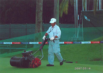 コースセッティング グリーン:3.8mm カラー:6mm ティーグランド:8mm FW:13mm LM526A セミラフ・ウォークパス:30mm ラフ:一週間前に65mmで刈り止め GM1600 南愛知カントリークラブ美浜コース 吉田憲司