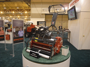この展示会には、ゴルフ場のコースメンテナンスに関する商品やコース用品が多数出展されています。